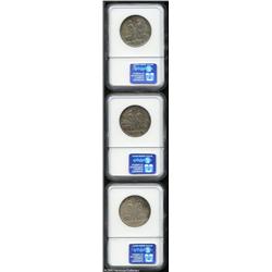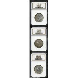 <B>1938<img border='0' src='http://www.heritagecoins.com/images/star.gif' width=10 height=10>ET Boone PDS Set MS67 NGC.</B></I> The set includes: <B>1938,</B></I> light rose, orange, olive, and gray patina; <B>1938-D,</B></I> deeply toned in mauve and orange coloration; and <B>1938-S,</B></I> lightly toned over each side. 3 coins Lot:8460
