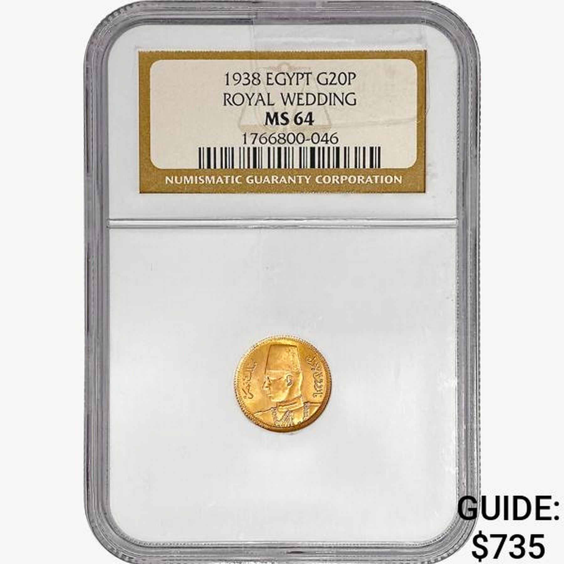 1938 Egypt 20 Pesos .0478oz. Gold NGC MS64