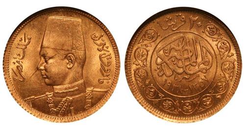 King Farouk Royal Wedding. A gem uncirculated commemorative KM#370.