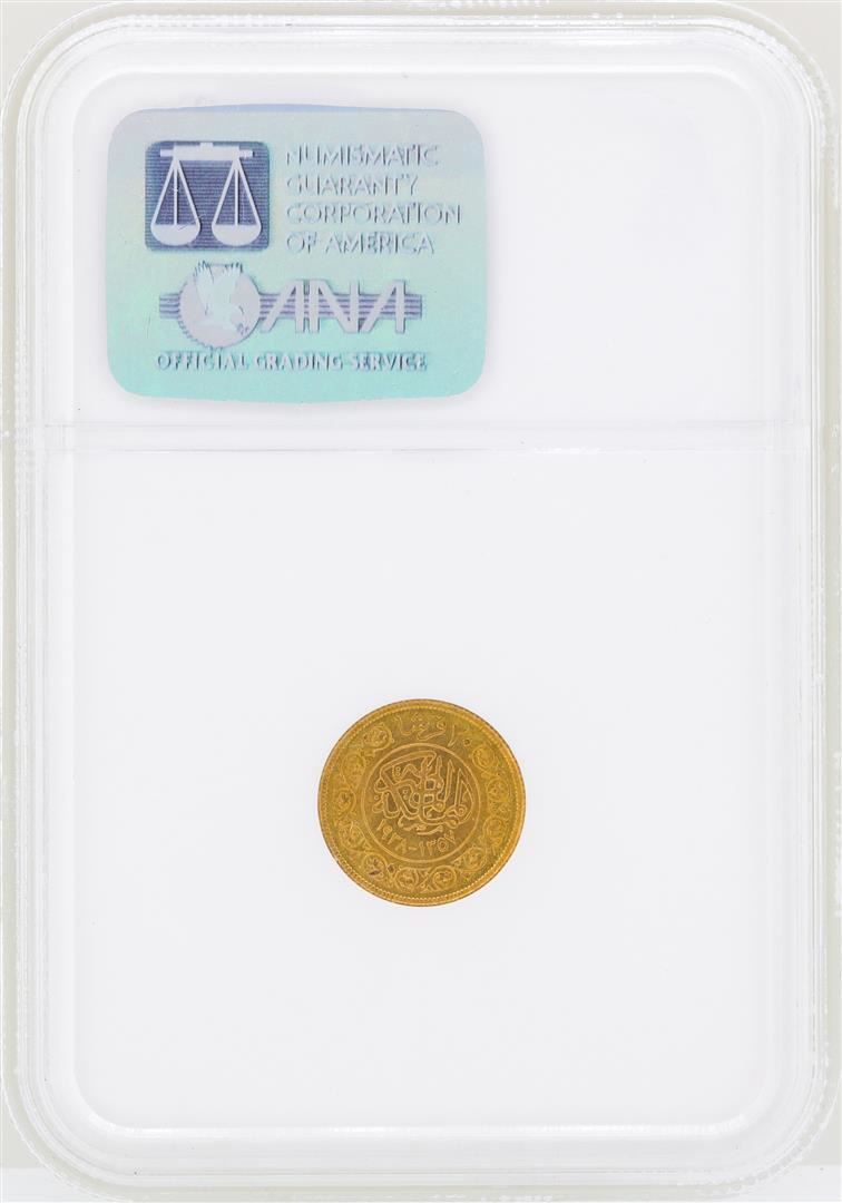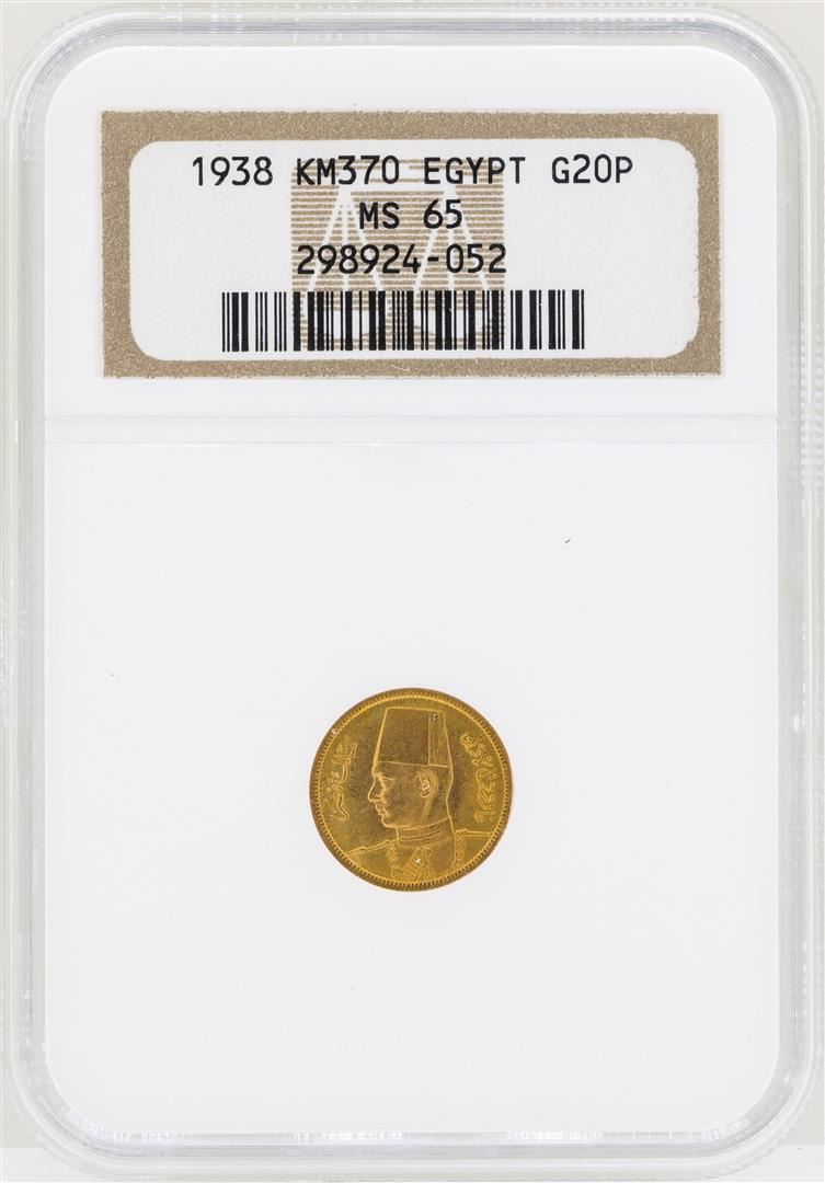 One 1938 Egypt 20 Piastres Royal Wedding Gold Coin NGC MS65. NGC Certified.