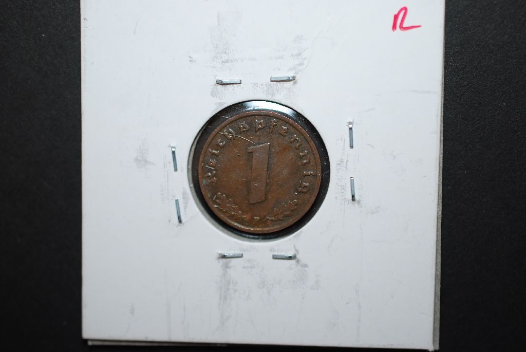 1938-F German 1 Reichspfennig Foreign Coin With Flying Eagle Holding Swatstika; AU; EST. $10-15