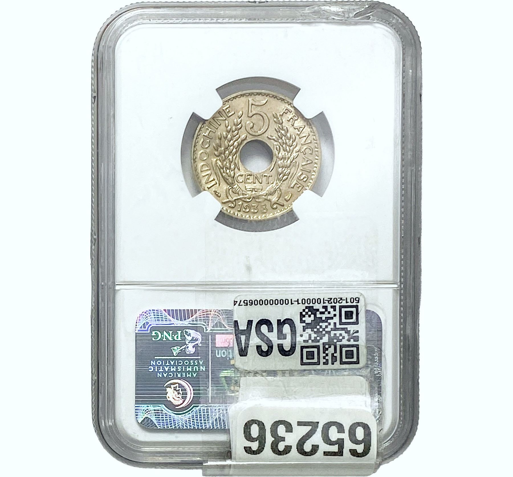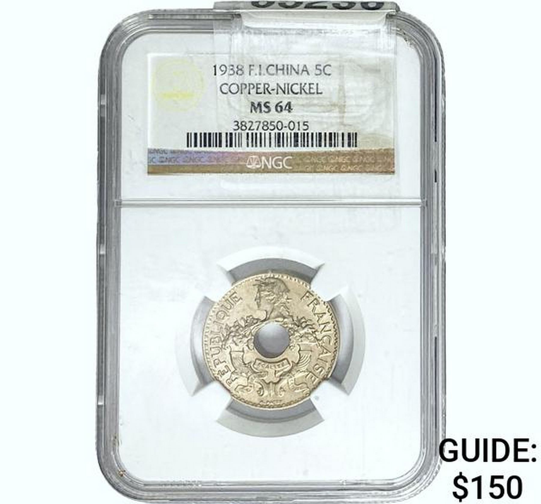 1938 F.I. 5C China Copper-Nickel NGC MS64