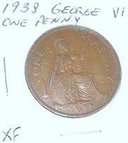 1938 GEORGE VI GREAT BRITAIN PENNY *EXTRA FINE GRADE*!! COIN CAME OUT OF SAFE BOX!! ***Coin, Currency & All Items Listed in this auction - Grades, Conditions and Values are not Safe Deposit Coins LLC Responsibilty. Grades, Condition and Values are determined by Consigner(s) & Buyers ONLY