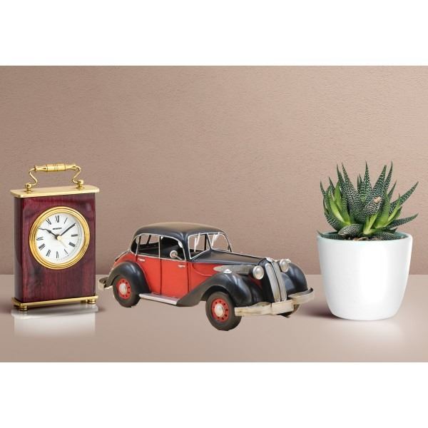 Decorate any table, desk, or shelf in sporty fashion with Our Rustic 1938-1941 BMW 327 Coupe car. Featuring a rustic iron frame, this charming vintage Classic Car includes fine detail. The black metal exterior seat is finished in Red and black colors. Dimensions: approx (H X W): 5 X 13 Inches.