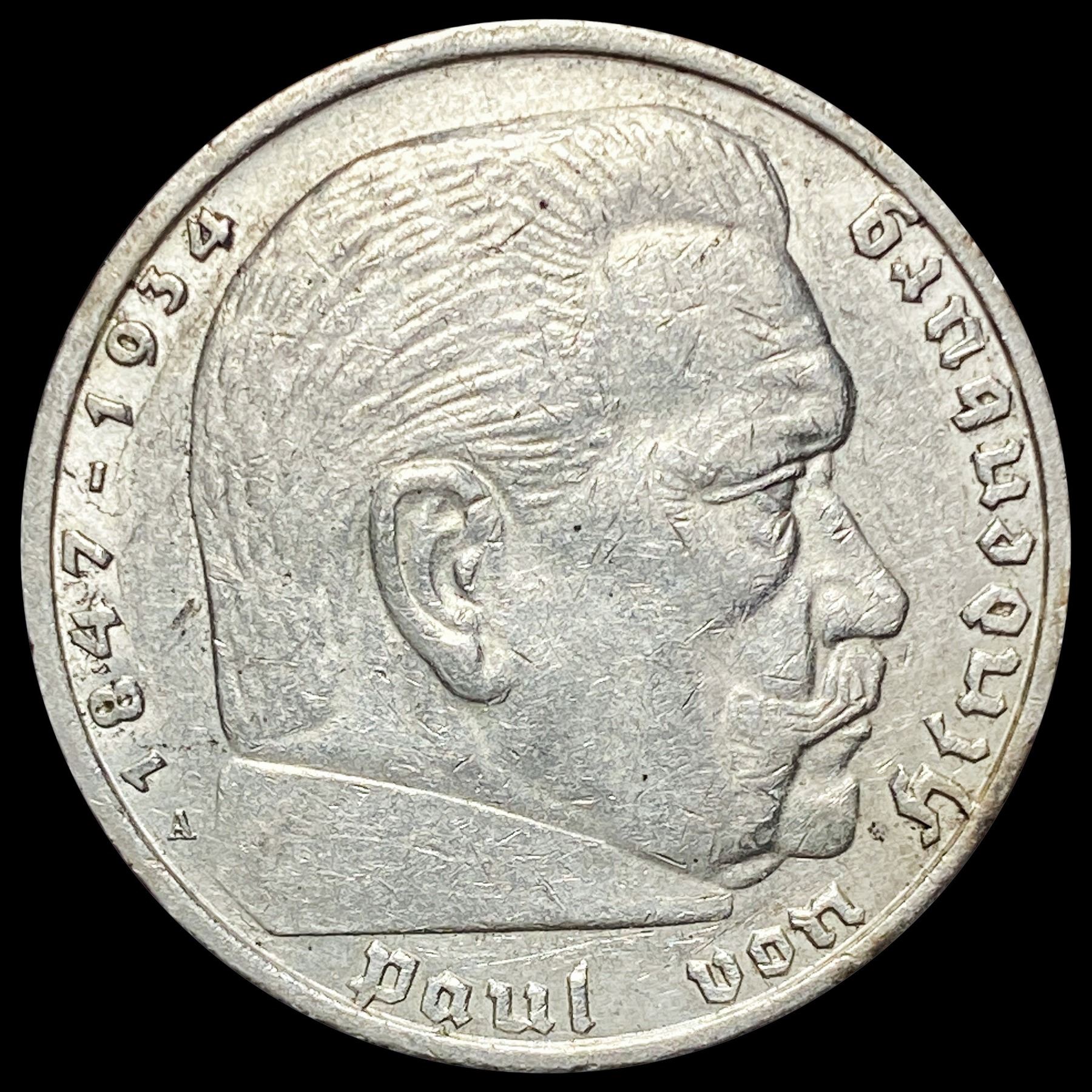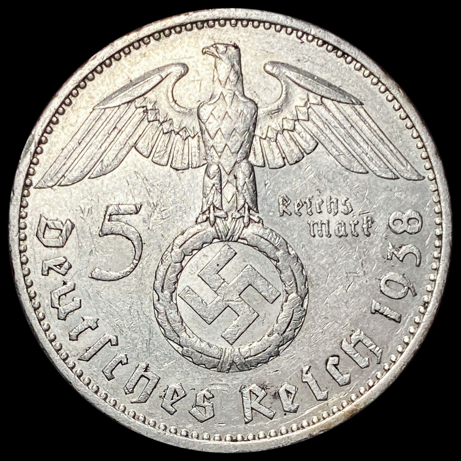 1938 Germany Silver 5 Reichsmark CLOSELY UNCIRCULATED