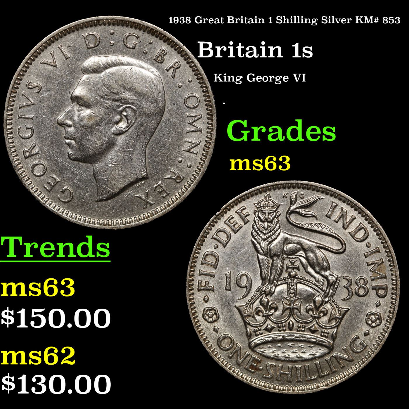 1938 Great Britain 1 Shilling Silver KM# 853 Grades Select Unc.