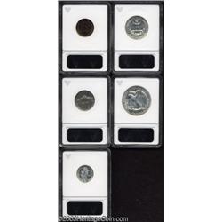 <table><tr><td><TABLE cellSpacing=0 cellPadding=0 width="100%" bgColor=#000000 border=0><TBODY> <TR><TD width="100%"><TABLE cellSpacing=1 cellPadding=3 width="100%" border=0><TBODY><TR><TD width="100%" bgColor=#79735c><FONT face=arial color=#ffffff size=3><B>Description</B> </FONT></TD></TR><TR><TD width="100%" bgColor=#ffffff><FONT face=arial size=2><B>1938 Proof Set PR55 to PR64 ANACS.</B></I> The set includes: <B>1938 1C Cent PR63 Red and Brown ANACS,</B></I> bright apple-green and ruby-red colors; <B>1938 Nickel--Cleaned--ANACS, Net PR60,</B></I> mildly cleaned and retoned in attractive milky gray hues; <B>1938 Dime PR64 Full Bands ANACS,</B></I> freckles of golden-brown patina cling to the rims; <B>1938 Quarter--Cleaned--ANACS, Net PR55,</B></I> wispy hairlines on both sides; and a <B>1938 Half Dollar PR61 ANACS,</B></I> well struck, nicer than the grade implies.<BR><I>From the Holman Family Collection.</B></I> (5 coins) </FONT></TD></TR></TBODY></TABLE></TD></TR></TBODY></TABLE><BR><A name=PricesRealized></A><TABLE cellSpacing=0 cellPadding=0 width="100%" bgColor=#000000 border=0><TBODY><TR><TD width="100%"><TABLE cellSpacing=1 cellPadding=3 width="100%" border=0><TBODY><TR><TD width="100%" bgColor=#79735c><A name=PR><FONT face=arial color=#ffffff size=3><B>Previous Prices from Heritage Auctions</B> </FONT></A></TD></TR><TR><TD bgColor=#f6f6ed><TABLE cellSpacing=0 cellPadding=0 width="100%" border=1><TBODY><TR><TD align=middle width="33%"><B>Date</B></TD><TD align=middle width="33%"><B>Service</B></TD><TD align=middle width="33%"><B>Price</B></TD></TR><TR bgColor=whitesmoke><TD width="33%"><B>12/25/2001</B></TD><TD width="33%">ANACS</TD><TD width="33%">$38.00</TD></TR><TR bgColor=whitesmoke><TD width="33%"><B>01/09/2001</B></TD><TD width="33%">ANACS</TD><TD width="33%">$25.00</TD></TR></TBODY></TABLE></TD></TR><TR><TD bgColor=#ffffff><FONT face=arial size=1 ?>PLEASE NOTE: All prices realized reflect the final hammer price PLUS the buyer's premium in auctions that charge a buyer's premium. Each item has a notation at the top of the listing indicating whether that lot included a buyer's premium. Example: A item that sells with a final hammer price of $100 and a 20% buyer's premium will display with a price realized of $120. All information listed is intended to be as accurate as possible, but errors are possible. Please use this guide carefully and inform us of any inaccuracies. </FONT></TD></TR></TBODY></TABLE></TD></TR></TBODY></TABLE><BR><TABLE cellSpacing=0 cellPadding=0 width="100%" bgColor=#000000 border=0><TBODY><TR><TD width="100%"><TABLE cellSpacing=1 cellPadding=3 width="100%" border=0><TBODY><TR><TD width="100%" bgColor=#79735c colSpan=6><FONT face=arial color=#ffffff size=3><B>Price Guide*</B> </FONT></TD></TR><TR bgColor=#f6f6ed><TD align=middle><B>Grade</B> </TD><TD align=middle><B>Coin World<BR>(Trends)</B> </TD><TD align=middle><B>Numismedia<BR>Retail</B> </TD><TD align=middle><B>Numismedia<BR>Wholesale</B> </TD><TD align=middle><B>Coin<BR>Universe</B> </TD><TD align=middle><B>Heritage<BR>Value Index</B> </TD></TR><TR><TD colSpan=6>No Pricing Data Available</TD></TR><TR bgColor=#ffffff><TD colSpan=6><FONT size=1>*All information listed is intended to be as accurate as possible, but errors are possible. No item may be returned or refused based on this information which is provided as a service to our customers. You should contact each pricing source directly to determine the accuracy of this information. </FONT></TD></TR></TBODY></TABLE></TD></TR></TBODY></TABLE><BR><TABLE cellSpacing=0 cellPadding=0 width="100%" bgColor=#000000 border=0><TBODY><TR><TD width="100%"><TABLE cellSpacing=1 cellPadding=3 width="100%" border=0><TBODY><TR><TD width="100%" bgColor=#79735c><FONT face=arial color=#ffffff size=3><B>Population Guide</B> </FONT></TD></TR><TR bgColor=#ffffff><TD align=middle><!-- Begin Output of Population Grid--><TABLE cellSpacing=0 cellPadding=0 width="100%" border=0><TBODY><TR><TD vAlign=center><TABLE cellSpacing=0 width="100%" border=1 cellsadding="3"><TBODY><TR><TD vAlign=center><TABLE cellSpacing=0 cellPadding=3 width="100%" border=1><TBODY><TR><TD vAlign=center align=middle bgColor=#f0f1e8 colSpan=2 <CENTER><FONT face=Arial size=2><B>PCGS Pop </B></FONT><CENTER></CENTER></TD><TD vAlign=center align=middle bgColor=#f0f1e8 colSpan=2><CENTER><FONT face=Arial size=2><B>NGC Pop</B></CENTER></FONT></TD></TR><TR><TD vAlign=center><FONT face=Arial size=2>(63)</FONT> </TD><TD vAlign=center align=right><FONT face=Arial size=2>27</FONT> </TD><TD vAlign=center><FONT face=Arial size=2>(63)</FONT> </TD><TD vAlign=center align=right><FONT face=Arial size=2>10</FONT> </TD></TR><TR><TD vAlign=center><FONT face=Arial size=2>(>63)</FONT> </TD><TD vAlign=center align=right><FONT face=Arial size=2>82</FONT> </TD><TD vAlign=center><FONT face=Arial size=2>(>63)</FONT> </TD><TD vAlign=center align=right><FONT face=Arial size=2>44</FONT> </TD></TR></TBODY></TABLE></TD></TR></TBODY></TABLE></TD></TR></TBODY></TABLE><!-- End Output of Population Grid--></TD></TR></TBODY></TABLE></TD></TR></TBODY></TABLE><BR><TABLE cellSpacing=0 cellPadding=0 width="100%" bgColor=#000000 border=0><TBODY><TR> 5 coins Important notice: Heritage usually auctions material at the rate of 200-250 lots per hour. On some occasions eBay Live bid software or the Internet may not be able to keep up with the pace of the auction. We recommend placing a realistic absentee bid now as insurance to avoid disappointment. Occasionally the auctioneer may eliminate or reject an eBay Live bid, and the auctioneer may also reopen a lot after the close of the eBay live bidding (usually because we missed an audience bid), and may reject your bid even if it shows you as the winning bidder. By bidding via eBay Live, you agree that Heritage may award the lot to another bidder at its sole discretion under the circumstances described above or any other reasonable circumstances. Also please note that all Heritage lots purchased throug