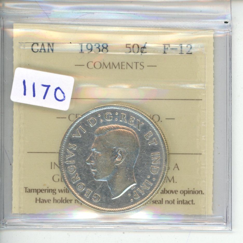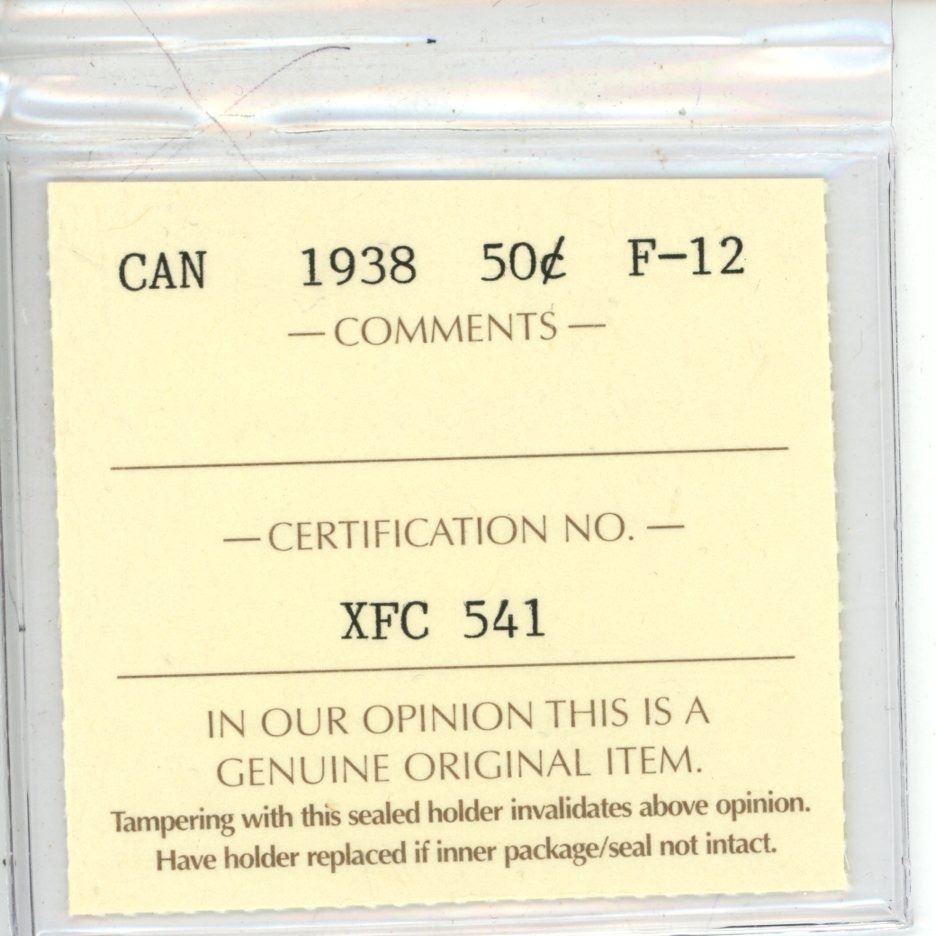 1938 ICCS Graded - Canadian Fifty Cent - F12