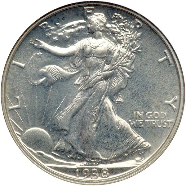 1938 Liberty Walking Half Dollar. NGC graded Proof 67. Light hint of gold tone. Only 8,152 struck. A worthwhile Superb Gem by any standard, the mirrors are not in the least timid or yielding, while providing sparkling gleam over both sides. The strike, like the luster, is confident, indeed, as bold as ever seen on virtually any Proof in the Walking Liberty half dollar series. Pop 251; 69 finer, 16 in 67 Star, 46 in 68, 7 in 68 Star.