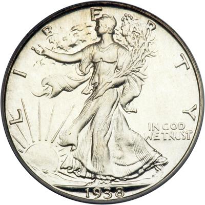 1938 Liberty Walking Half Dollar. PCGS graded Proof 65 PQ. Housed in an Old Green Holder. A nice untoned example. This is a sparkling Gem with bright reflective mirrors and a powerful strike. Sharp-edged devices and lettering throughout (PCGS # 6638).