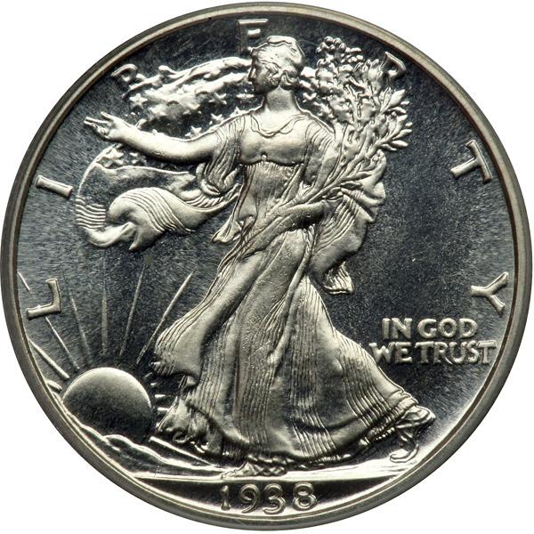 1938 Liberty Walking Half Dollar. PCGS graded Proof 67 CAC Approved. A gorgeous brilliant white Gem, as super, as handsome as any seen at this level. Sure to become a showpiece in any collection (PCGS # 6638) .