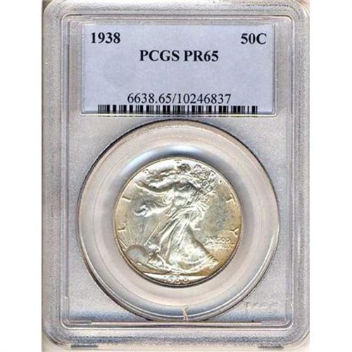 <b>1938 Liberty Walking Half Dollar. PCGS graded Proof 65.</b> Lovely gem with original cellophane wrapper toning on both sides <b>(PCGS # 6638)</b> <i>