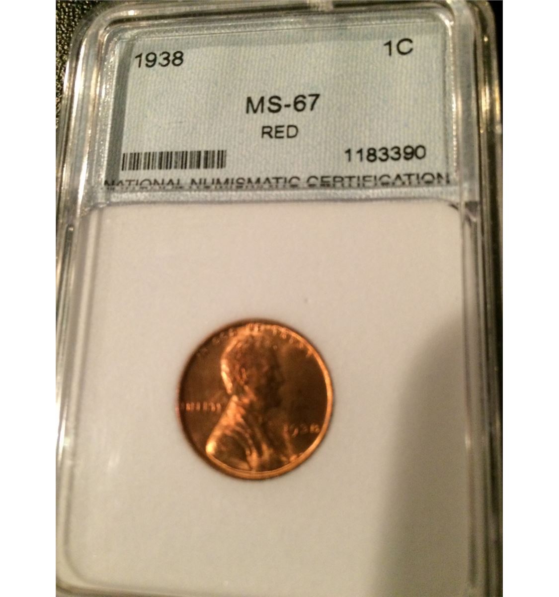 1938 Lincoln Cent NNC MS67 Red