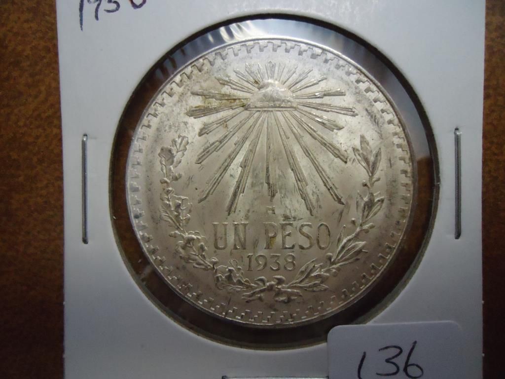 1938 MEXICO CAPS & RAY SILVER PESO
