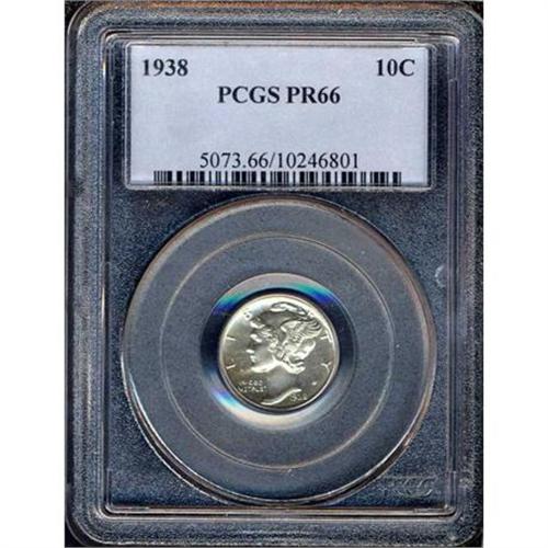 <b>1938 Mercury Dime. PCGS graded Proof 66.</b> A one-in-a-thousand example of this early Proof Mercury dime issue, with abundant luster that shimmers over pristine surfaces <b>(PCGS # 5073)</b> <i>