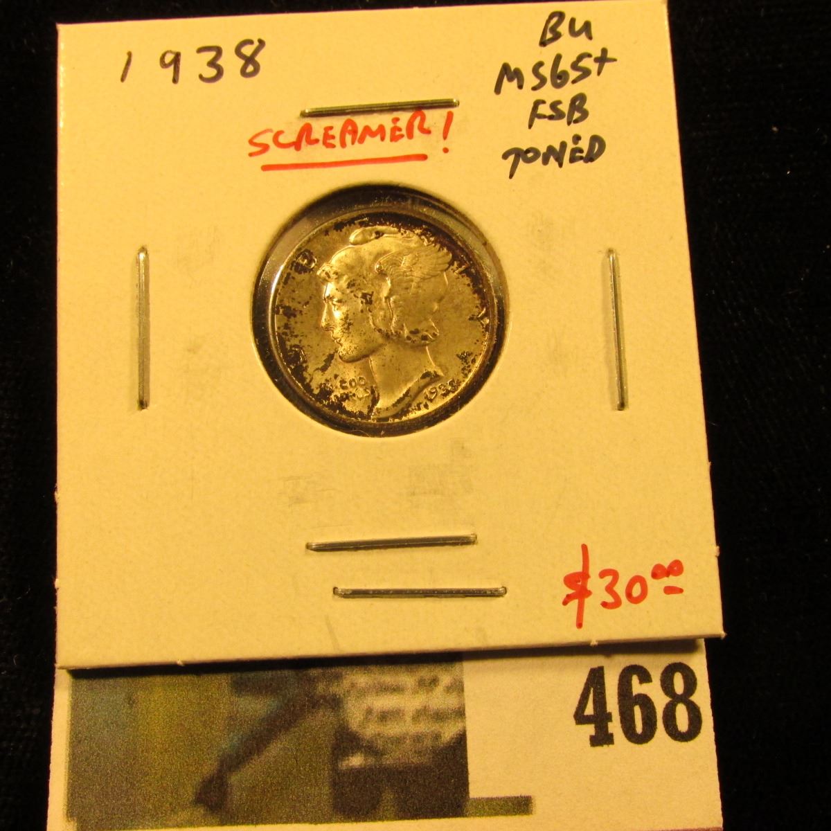 1938 Mercury Dime, BU MS65+ Full Split Bands toned, SCREAMER, value $30+