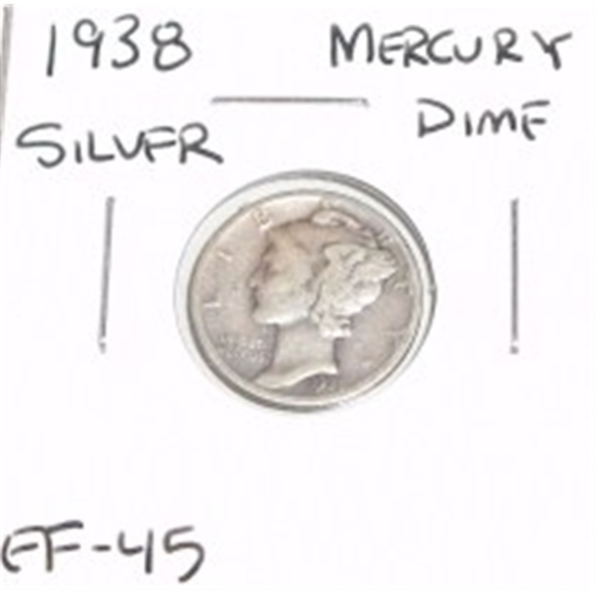1938 Mercury Silver Dime *EXTRA FINE-45 GRADE*!! ***Coin & Currency Grades, Conditions & Values are not Safe Deposit Coins Responsibilty. Grades, Conditions & Values are determined by Consigner(s) & Buyers***