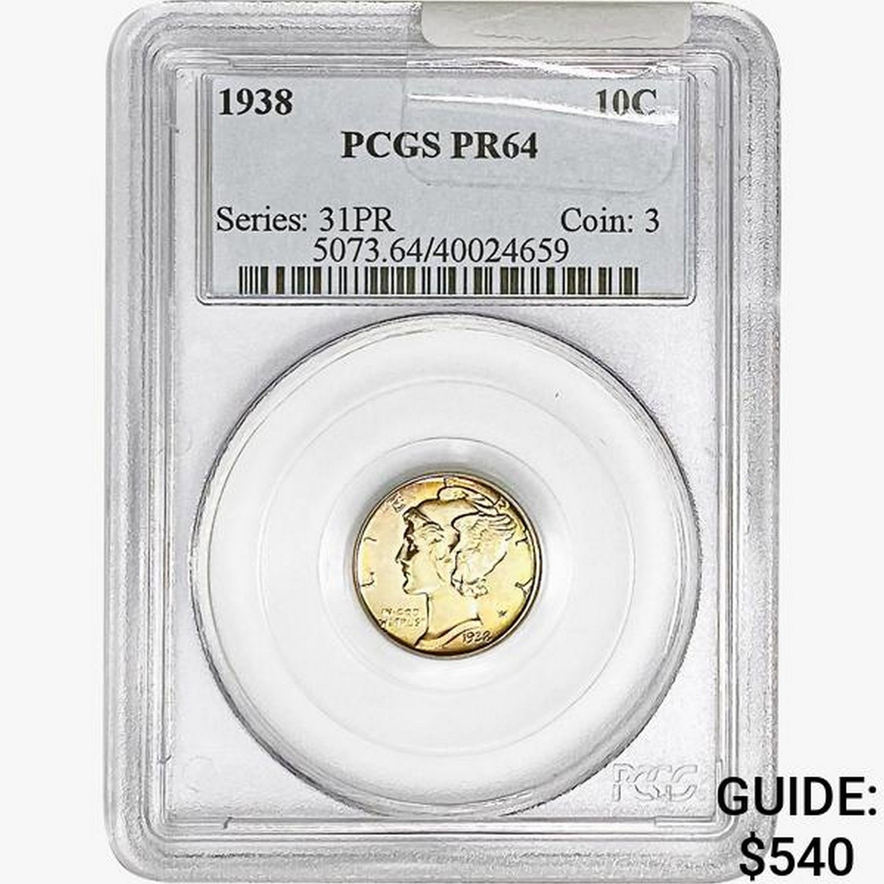 1938 Mercury Silver Dime PCGS PR64