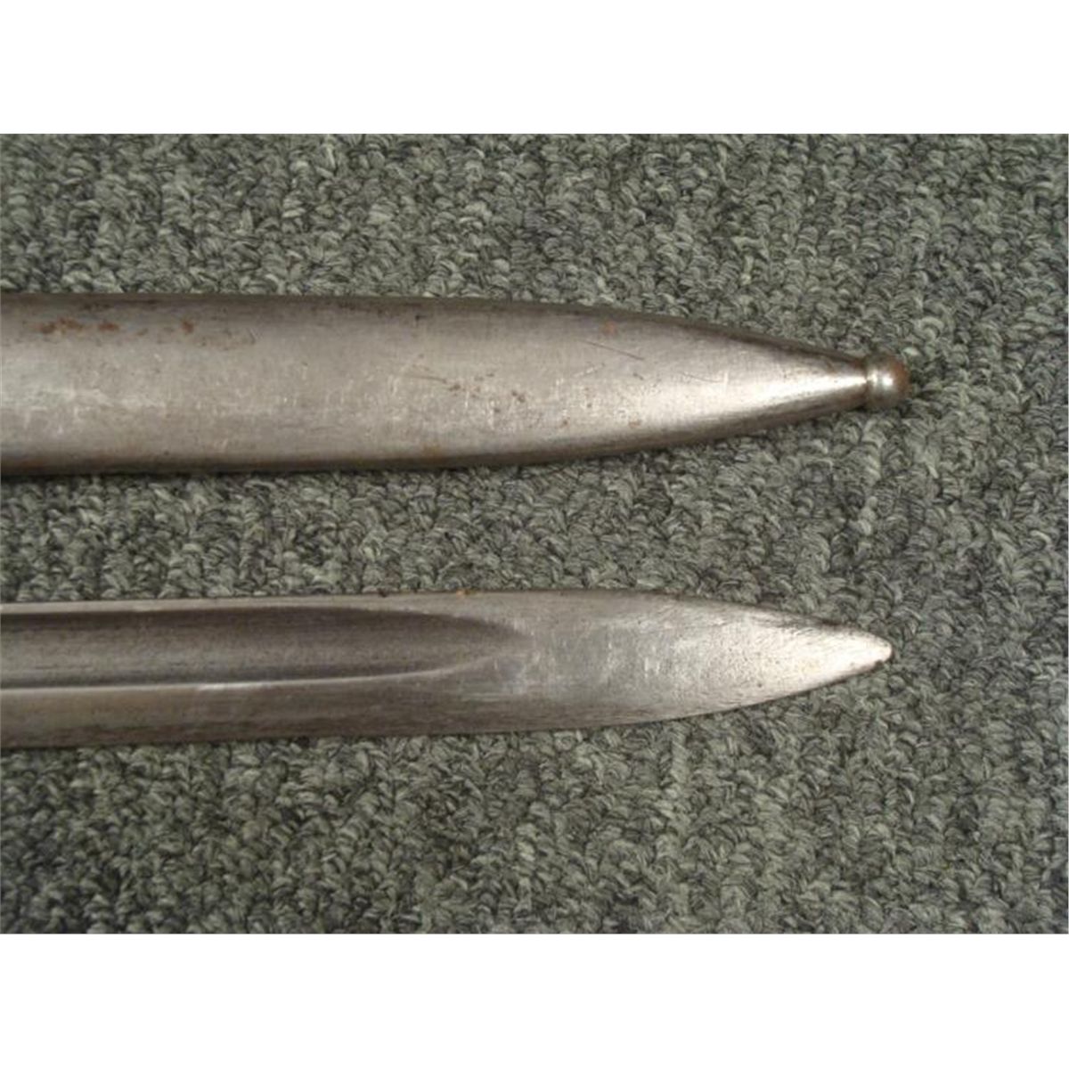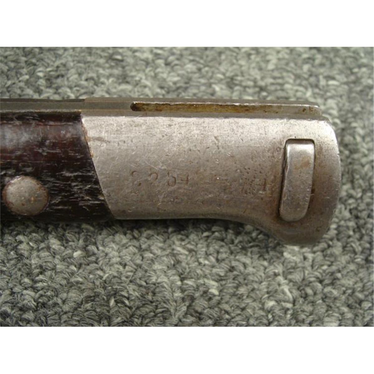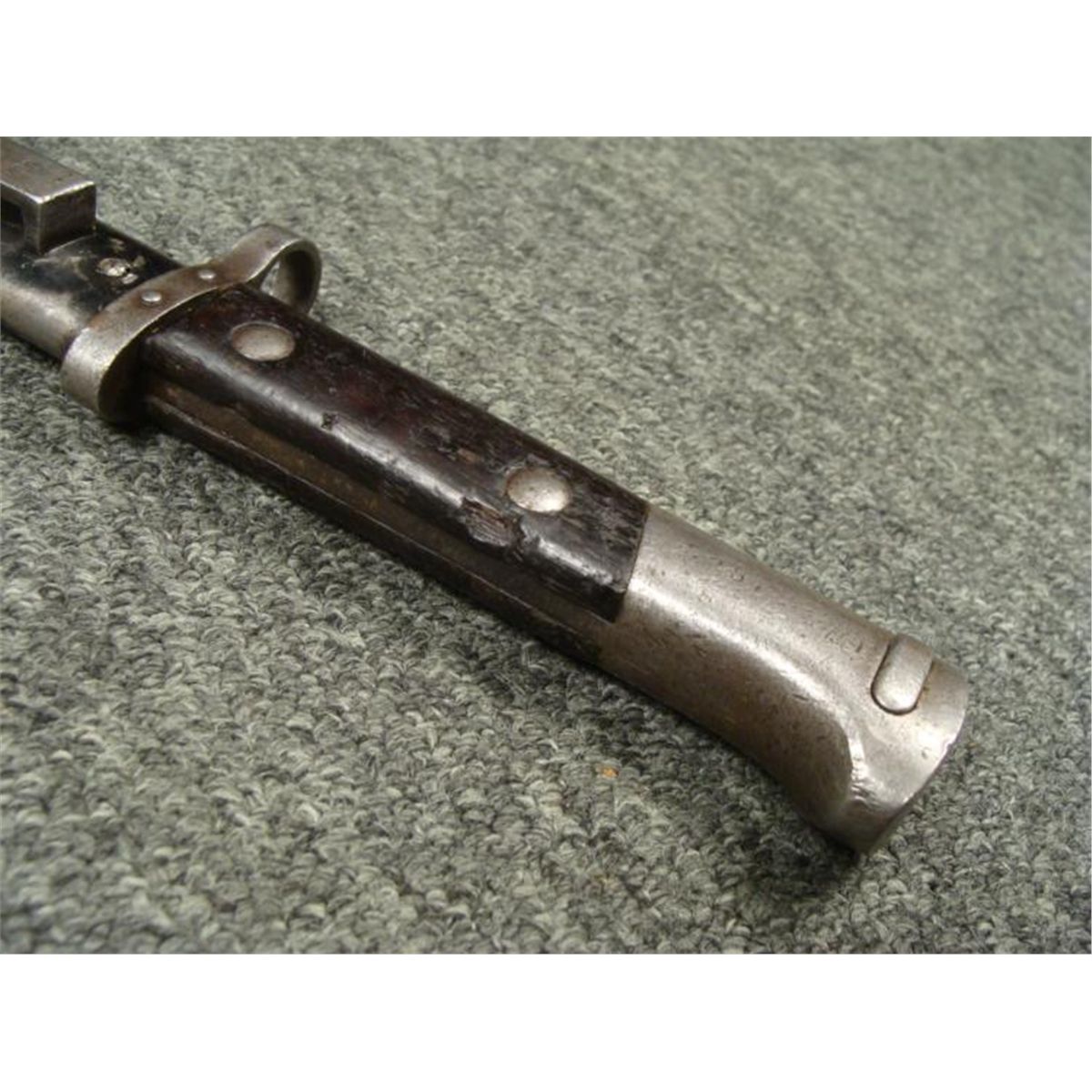 1938 NAZI/CZECH MAUSER BAYONET & SCABBARD--WELL MARKED * NAZI/CHECH MAUSER RIFLE BAYONET--WOOD GRIPS EAGLE HEAD POMMEL W/RELEASE BUTTON/WORKS FINE -GOOD BLADE-RICASSO MARKED "CSZ-D"--GOOD STEEL SCABBARD--FROG STUD MARKED "CSZ -L3 W/LION-38" SIDE OF STUD MARKED "C4 5295"--GREAT WWII COMBAT BAYONET *