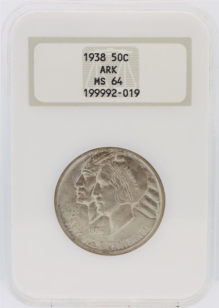 One 1938 NGC Graded MS64 Ark Half Dollar Silver Coin. NGC Certified.