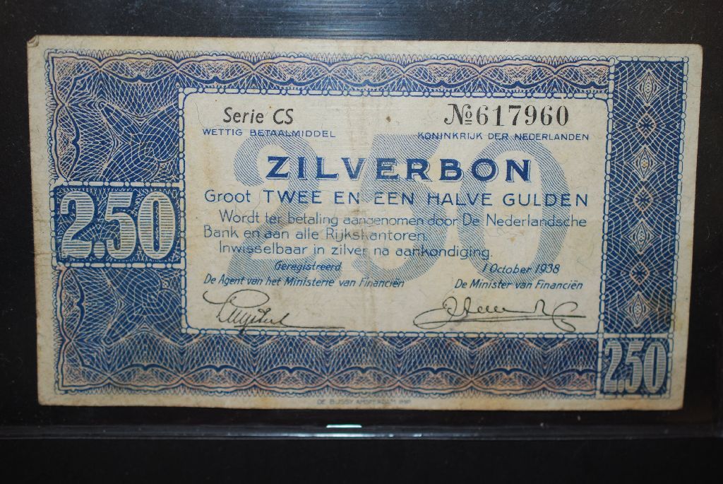 1938 Netherland 2.50 Zilverbon Foreign Bank Note; EST. $5-10