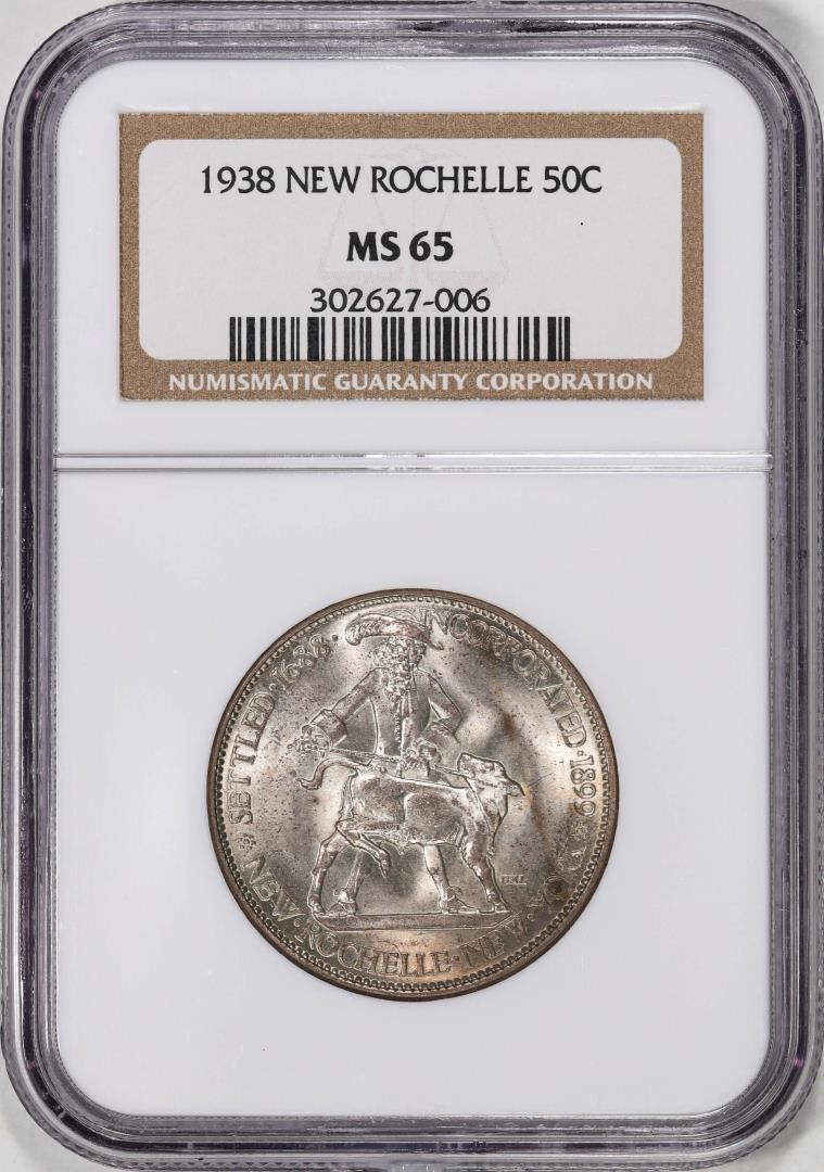 One 1938 New Rochelle Commemorative Half Dollar Coin NGC MS65. NGC Certified.