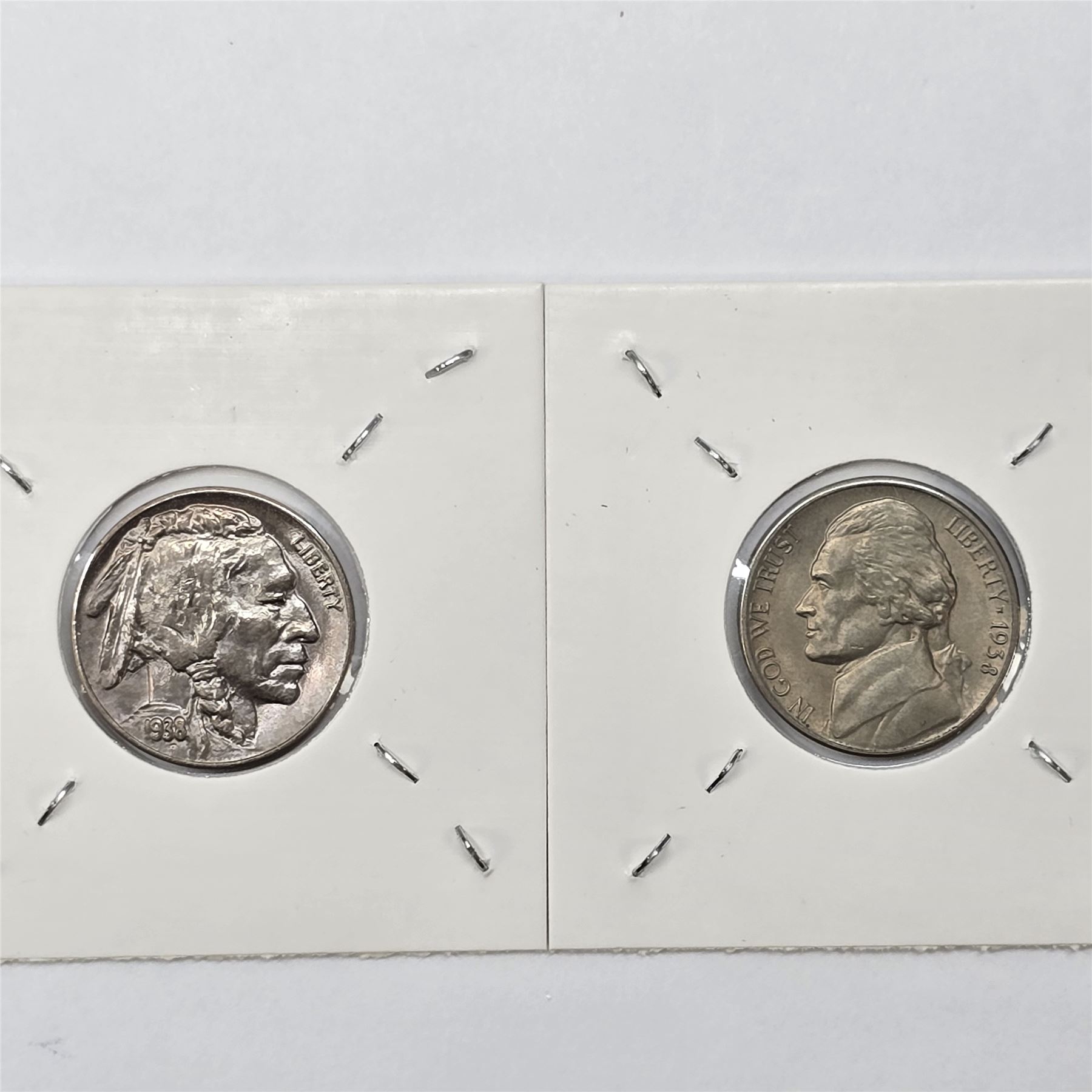 Lot of (2) "Double D" Nickels including; (1) Buffalo and (1) Jefferson Nickel. BOTH minted 1938