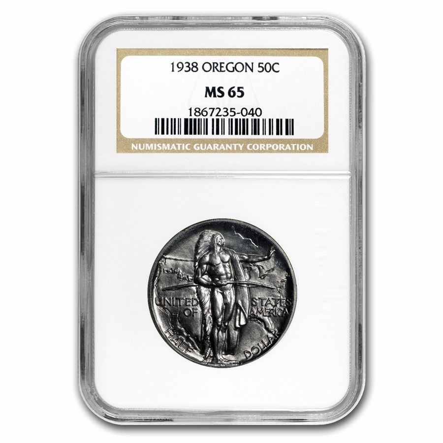 One 1938 Oregon Trail Commemorative Half Dollar Coin NGC MS65.
