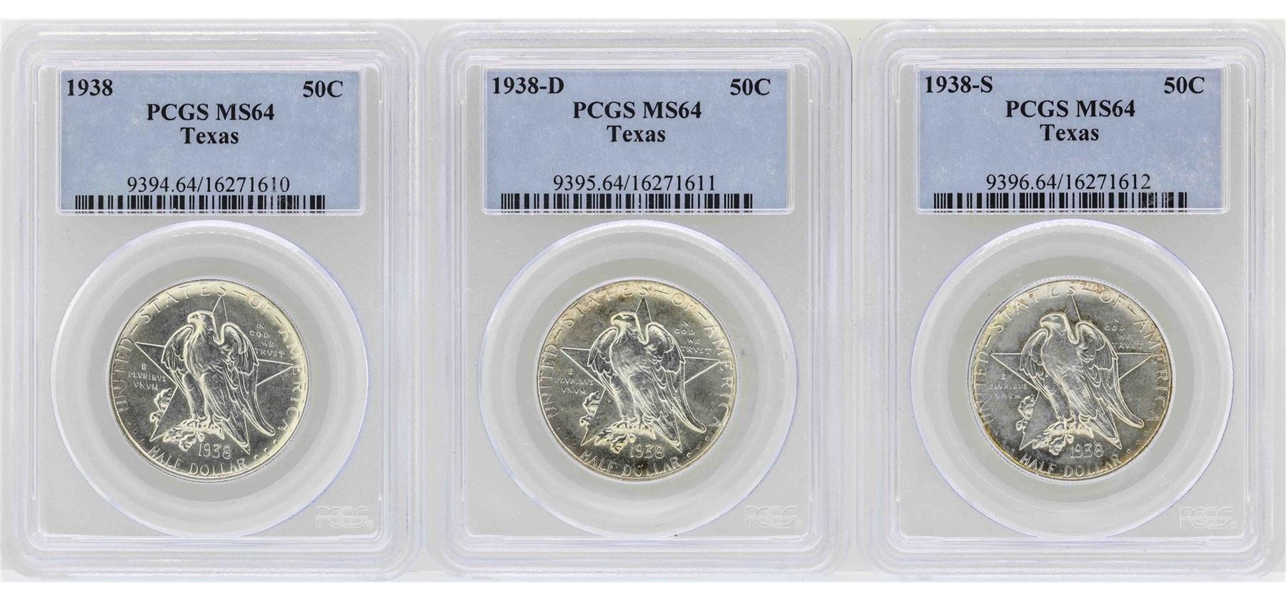 One 1938-P/D/S Texas Commemorative Half Dollar Coins PCGS MS64. PCGS Graded.