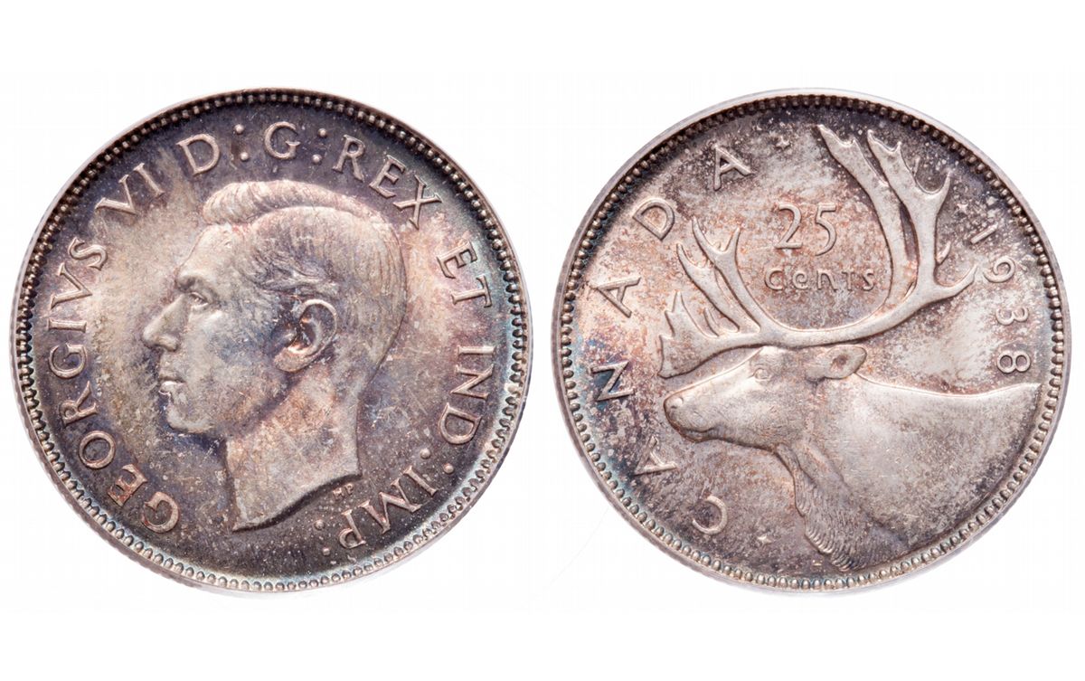 1938. PCGS graded Mint State-65. Medium heavy rainbow toning. Ex. MOORE's Torex, 2003. Lot #1716.