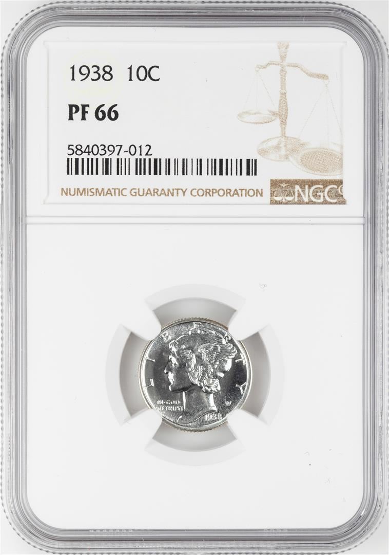 One 1938 Proof Mercury Dime Coin NGC PF66. NGC Certified.