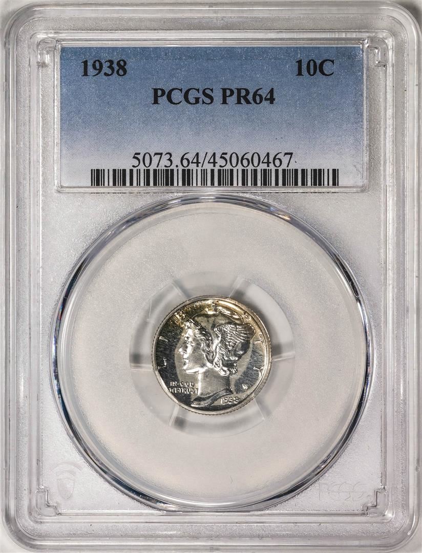 One 1938 Proof Mercury Dime Coin PCGS PR64. PCGS Graded.