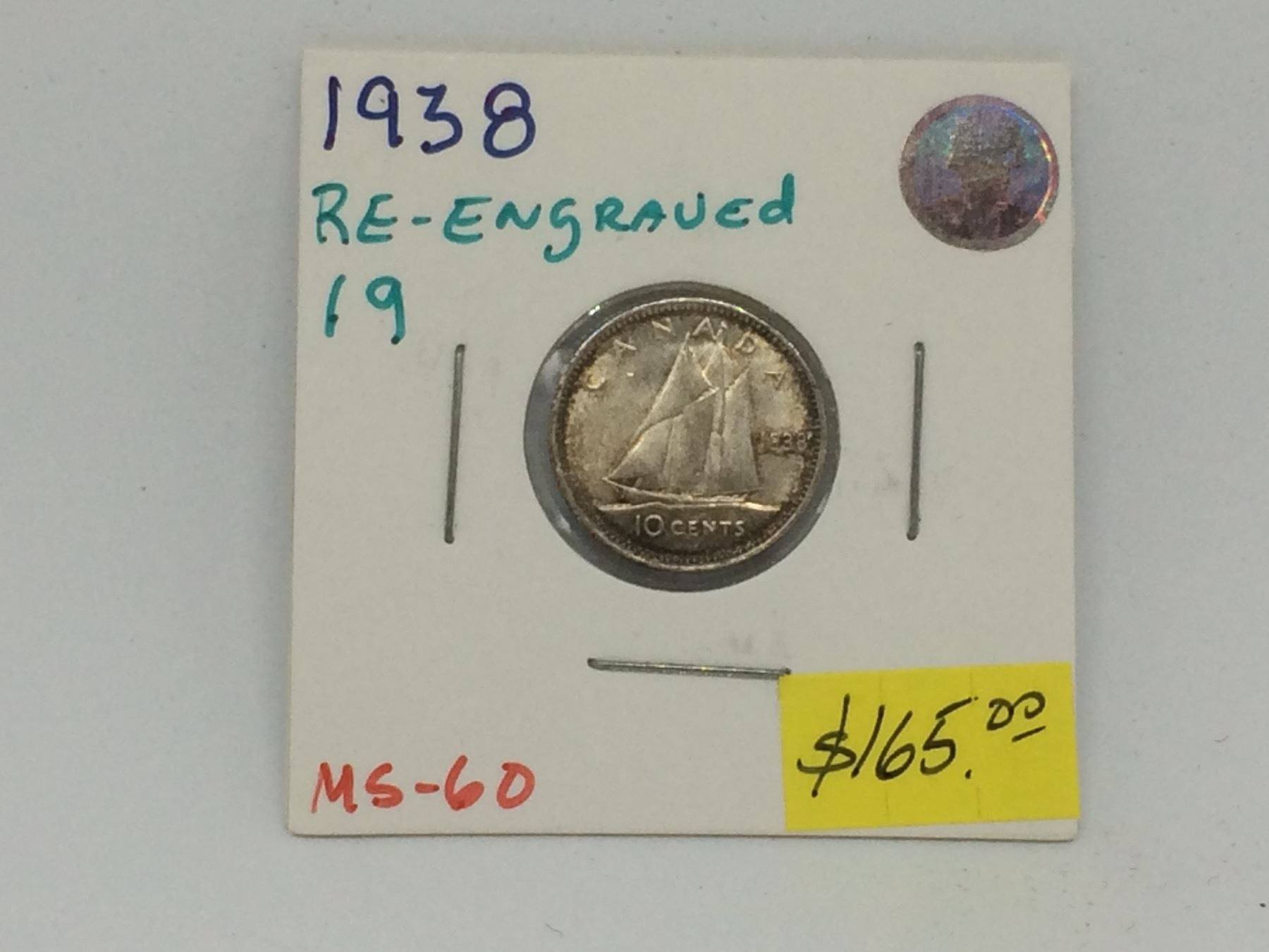 1938 Re-Engraved 19 Canada Silver 10 Cents-Rare Variety