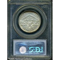 <B>1938-S 50C Arkansas MS66 PCGS.</B></I> Arcs of crimson, sea-green, and gold-brown toning occur along the lower obverse and upper reverse borders. Nicely struck devices, with well preserved, lustrous surfaces. Population: 50 in 66, 0 finer (9/04). Lot:8444