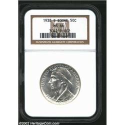 1938-S 50C Boone MS66 NGC. Brilliant throughout with smooth, even, bright mint luster and virtually.