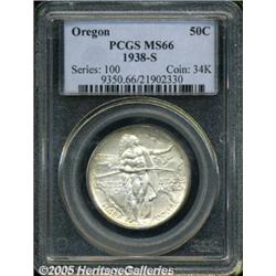 <B>1938-S 50C Oregon MS66 PCGS.</B></I> Wisps of olive patina glide over lustrous surfaces. The design elements are sharply struck throughout.
