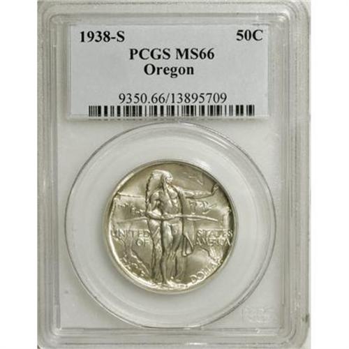 <B>1938-S 50C Oregon MS66 PCGS.</B></I> PCGS Population (416/104). NGC Census: (442/130). Mintage: 6,006. Numismedia Wsl. Price for NGC/PCGS coin in MS66: $356. (#9350)<BR><I>From The Frank DuVall Collection of U.S. Commemoratives.</B></I><BR><BR><b>Shipping:</b> Coins & Currency (<a target="_blank" href="http://www.heritageauctions.com/common/shipping.php">view shipping information</a>\)