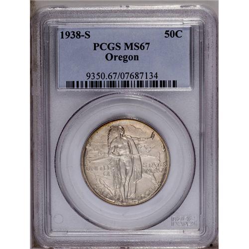 1938-S 50C Oregon MS67 PCGS. Smooth, lustrous surfaces 1938-S[50C] Oregon MS67 PCGS.
