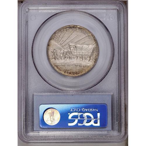 <B>1938-S<50C> Oregon MS67 PCGS.</B></I> Smooth, lustrous surfaces display a few traces of gold-tan patina, especially on the reverse border. The design features are well brought up throughout. A very pleasing commemorative in all respects. Population: 96 in 67, 9 finer (3/06). <BR><BR><B>Important notice:</B> Heritage usually auctions material at the rate of 200-250 lots per hour. On some occasions eBay Live bid software or the Internet may not be able to keep up with the pace of the auction. We recommend placing a realistic absentee bid now as insurance to avoid disappointment. Occasionally the auctioneer may eliminate or reject an eBay Live bid, and the auctioneer may also reopen a lot after the close of the eBay live bidding (usually because we missed an audience bid), and may reject your bid even if it shows you as the winning bidder. By bidding via eBay Live, you agree that Heritage may award the lot to another bidder at its sole discretion under the circumstances described above or any other reasonable circumstances. Since eBay bids are not shown to us until we open the lot on the floor, we treat those bids just like floor bids. In most cases the floor responds before the eBay bid is presented to us, due to Internet lag time, so for consistency we have made it a policy that floor bids are always considered first over tie eBay live bids. Also please note that all Heritage lots purchased through eBay Live carry a 20% Buyer's Premium. Please make sure you read the Terms and Conditions before you bid. This lot is being auctioned in conjunction with a live floor auction by Heritage Galleries & Auctioneers. All final auction and invoice information will be supplied by Heritage Galleries & Auctioneers, and all other information should be considered preliminary. Lot:5045 <BR><BR><B>Winning Notification and Billing:</B> After the FINAL session in this auction is complete, Heritage will send e-mail and snail mail invoices. This process normally takes several days. All final auction and invoice information will be supplied by Heritage Galleries & Auctioneers, and all other information should be considered preliminary. <BR><BR>This auction will be conducted on a live auction floor and over the Internet through eBay Live. If you choose to place an absentee bid, please take a moment to <font color='#0000ff'><u><a href='http://pages.ebay.com/liveauctions/help/before/laabsentee.html'>learn how eBay Live absentee bidding works</a></u></font><font color='#000000'>