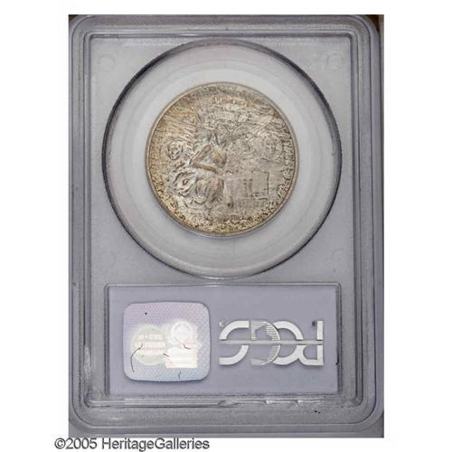 <B>1938-S<50C> Texas MS67 PCGS.</B></I> Beautiful golden-orange toning radiates from the lower obverse periphery, while mottled apricot patina is splashed over the upper obverse. The satiny gray reverse has a coating of speckled russet color, and, like the obverse, seems blemish-free. A marvelous Superb Gem, with tremendous eye appeal. Population: 41 in 67, 1 finer (12/05).