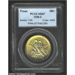1938-S 50C Texas MS67 PCGS. The obverse has bright and dynamic golden-brown and champagne-rose color
