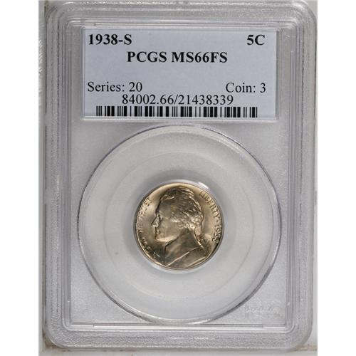 1938-S 5C MS66 Full Steps PCGS. A highly lustrous and