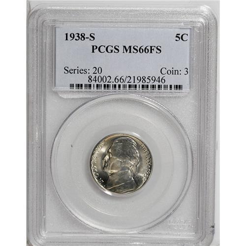 1938-S 5C MS66 Full Steps PCGS. Olive-gold, lavender,