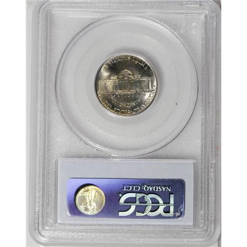 <B>1938-S<5C> MS66 Full Steps PCGS.</B></I> Olive-gold, lavender, and ice-blue converge in the patina of this boldly struck nickel. A lustrous piece with two small marks noted on Jefferson's cheek.