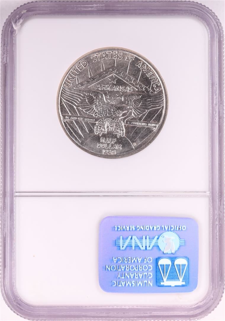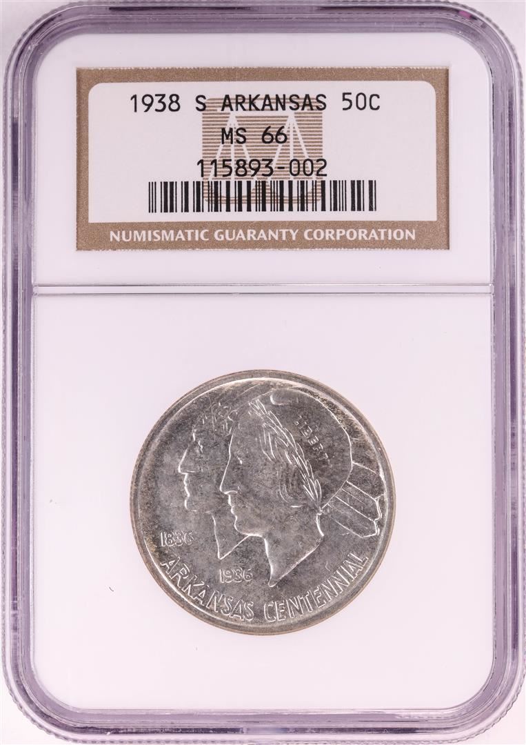 One 1938-S Arkansas Centennial Commemorative Half Dollar Coin NGC MS66. NGC Certified.