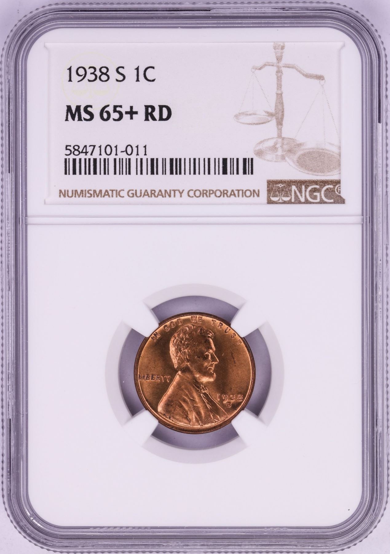 One 1938-S Lincoln Wheat Cent Coin NGC MS65+RD.