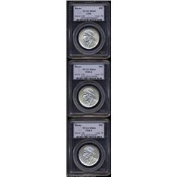 <table><tr><td><TABLE cellSpacing=0 cellPadding=0 width="100%" bgColor=#000000 border=0><TBODY> <TR><TD width="100%"><TABLE cellSpacing=1 cellPadding=3 width="100%" border=0><TBODY><TR><TD width="100%" bgColor=#79735c><FONT face=arial color=#ffffff size=3><B>Description</B> </FONT></TD></TR><TR><TD width="100%" bgColor=#ffffff><FONT face=arial size=2><B>1938 SET Boone PDS Set MS64 to MS65 PCGS.</B></I> The set includes: <B>1938 MS65,</B></I> lustrous and exquisitely preserved; <B>1938-D MS64,</B></I> sharply struck, attractive, impressive surfaces; and a <B>1938-S MS64,</B></I> pearl-gray and apricot color, an attractive near-Gem. A lightly toned and pleasing low mintage set.<BR><I>From the Holman Family Collection.</B></I> (3 coins) </FONT></TD></TR></TBODY></TABLE></TD></TR></TBODY></TABLE><BR><A name=PricesRealized></A><TABLE cellSpacing=0 cellPadding=0 width="100%" bgColor=#000000 border=0><TBODY><TR><TD width="100%"><TABLE cellSpacing=1 cellPadding=3 width="100%" border=0><TBODY><TR><TD width="100%" bgColor=#79735c><A name=PR><FONT face=arial color=#ffffff size=3><B>Previous Prices from Heritage Auctions</B> </FONT></A></TD></TR><TR><TD bgColor=#f6f6ed><TABLE cellSpacing=0 cellPadding=0 width="100%" border=1><TBODY><TR><TD align=middle width="33%"><B>Date</B></TD><TD align=middle width="33%"><B>Service</B></TD><TD align=middle width="33%"><B>Price</B></TD></TR><TR bgColor=whitesmoke><TD width="33%"><B>07/22/2003</B></TD><TD width="33%">NGC</TD><TD width="33%">$1,150.00</TD></TR></TBODY></TABLE></TD></TR><TR><TD bgColor=#ffffff><FONT face=arial size=1 ?>PLEASE NOTE: All prices realized reflect the final hammer price PLUS the buyer's premium in auctions that charge a buyer's premium. Each item has a notation at the top of the listing indicating whether that lot included a buyer's premium. Example: A item that sells with a final hammer price of $100 and a 20% buyer's premium will display with a price realized of $120. All information listed is intended to be as accurate as possible, but errors are possible. Please use this guide carefully and inform us of any inaccuracies. </FONT></TD></TR></TBODY></TABLE></TD></TR></TBODY></TABLE><BR><TABLE cellSpacing=0 cellPadding=0 width="100%" bgColor=#000000 border=0><TBODY><TR><TD width="100%"><TABLE cellSpacing=1 cellPadding=3 width="100%" border=0><TBODY><TR><TD width="100%" bgColor=#79735c colSpan=6><FONT face=arial color=#ffffff size=3><B>Price Guide*</B> </FONT></TD></TR><TR bgColor=#f6f6ed><TD align=middle><B>Grade</B> </TD><TD align=middle><B>Coin World<BR>(Trends)</B> </TD><TD align=middle><B>Numismedia<BR>Retail</B> </TD><TD align=middle><B>Numismedia<BR>Wholesale</B> </TD><TD align=middle><B>Coin<BR>Universe</B> </TD><TD align=middle><B>Heritage<BR>Value Index</B> </TD></TR><TR><TD colSpan=6>No Pricing Data Available</TD></TR><TR bgColor=#ffffff><TD colSpan=6><FONT size=1>*All information listed is intended to be as accurate as possible, but errors are possible. No item may be returned or refused based on this information which is provided as a service to our customers. You should contact each pricing source directly to determine the accuracy of this information. </FONT></TD></TR></TBODY></TABLE></TD></TR></TBODY></TABLE><BR><TABLE cellSpacing=0 cellPadding=0 width="100%" bgColor=#000000 border=0><TBODY><TR><TD width="100%"><TABLE cellSpacing=1 cellPadding=3 width="100%" border=0><TBODY><TR><TD width="100%" bgColor=#79735c><FONT face=arial color=#ffffff size=3><B>Population Guide</B> </FONT></TD></TR><TR bgColor=#ffffff><TD align=middle><!-- Begin Output of Population Grid--><TABLE cellSpacing=0 cellPadding=0 width="100%" border=0><TBODY><TR><TD vAlign=center><TABLE cellSpacing=0 width="100%" border=1 cellsadding="3"><TBODY><TR><TD vAlign=center><TABLE cellSpacing=0 cellPadding=3 width="100%" border=1><TBODY><TR><TD vAlign=center align=middle bgColor=#f0f1e8 colSpan=2 <CENTER><FONT face=Arial size=2><B>PCGS Pop </B></FONT><CENTER></CENTER></TD><TD vAlign=center align=middle bgColor=#f0f1e8 colSpan=2><CENTER><FONT face=Arial size=2><B>NGC Pop</B></CENTER></FONT></TD></TR><TR><TD vAlign=center><FONT face=Arial size=2>(65)</FONT> </TD><TD vAlign=center align=right><FONT face=Arial size=2>0</FONT> </TD><TD vAlign=center><FONT face=Arial size=2>(65)</FONT> </TD><TD vAlign=center align=right><FONT face=Arial size=2>0</FONT> </TD></TR><TR><TD vAlign=center><FONT face=Arial size=2>(>65)</FONT> </TD><TD vAlign=center align=right><FONT face=Arial size=2>0</FONT> </TD><TD vAlign=center><FONT face=Arial size=2>(>65)</FONT> </TD><TD vAlign=center align=right><FONT face=Arial size=2>0</FONT> </TD></TR></TBODY></TABLE></TD></TR></TBODY></TABLE></TD></TR></TBODY></TABLE><!-- End Output of Population Grid--></TD></TR></TBODY></TABLE></TD></TR></TBODY></TABLE><BR><TABLE cellSpacing=0 cellPadding=0 width="100%" bgColor=#000000 border=0><TBODY><TR> 3 coins Important notice: Heritage usually auctions material at the rate of 200-250 lots per hour. On some occasions eBay Live bid software or the Internet may not be able to keep up with the pace of the auction. We recommend placing a realistic absentee bid now as insurance to avoid disappointment. Occasionally the auctioneer may eliminate or reject an eBay Live bid, and the auctioneer may also reopen a lot after the close of the eBay live bidding (usually because we missed an audience bid), and may reject your bid even if it shows you as the winning bidder. By bidding via eBay Live, you agree that Heritage may award the lot to another bidder at its sole discretion under the circumstances described above or any other reasonable circumstances. Also please note that all Heritage lots purchased through eBay Live carry a 20% Buyer's Premium. Please make sure you read the Terms and Conditions before you bid.</TD></TR></TBODY></TABLE></TD></TR></TBODY></TABLE>
