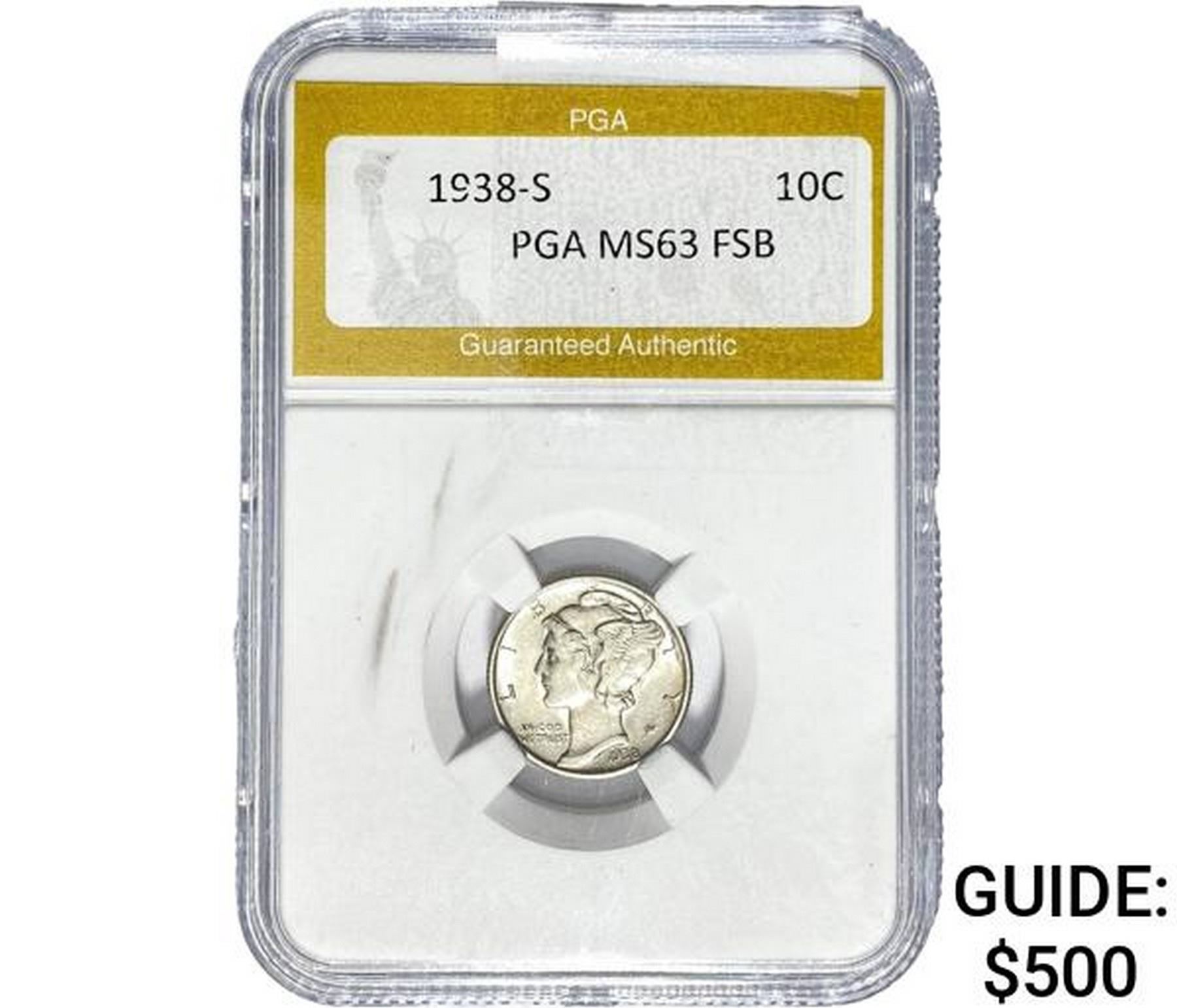 1938-S Mercury Silver Dime PGA MS63 FSB