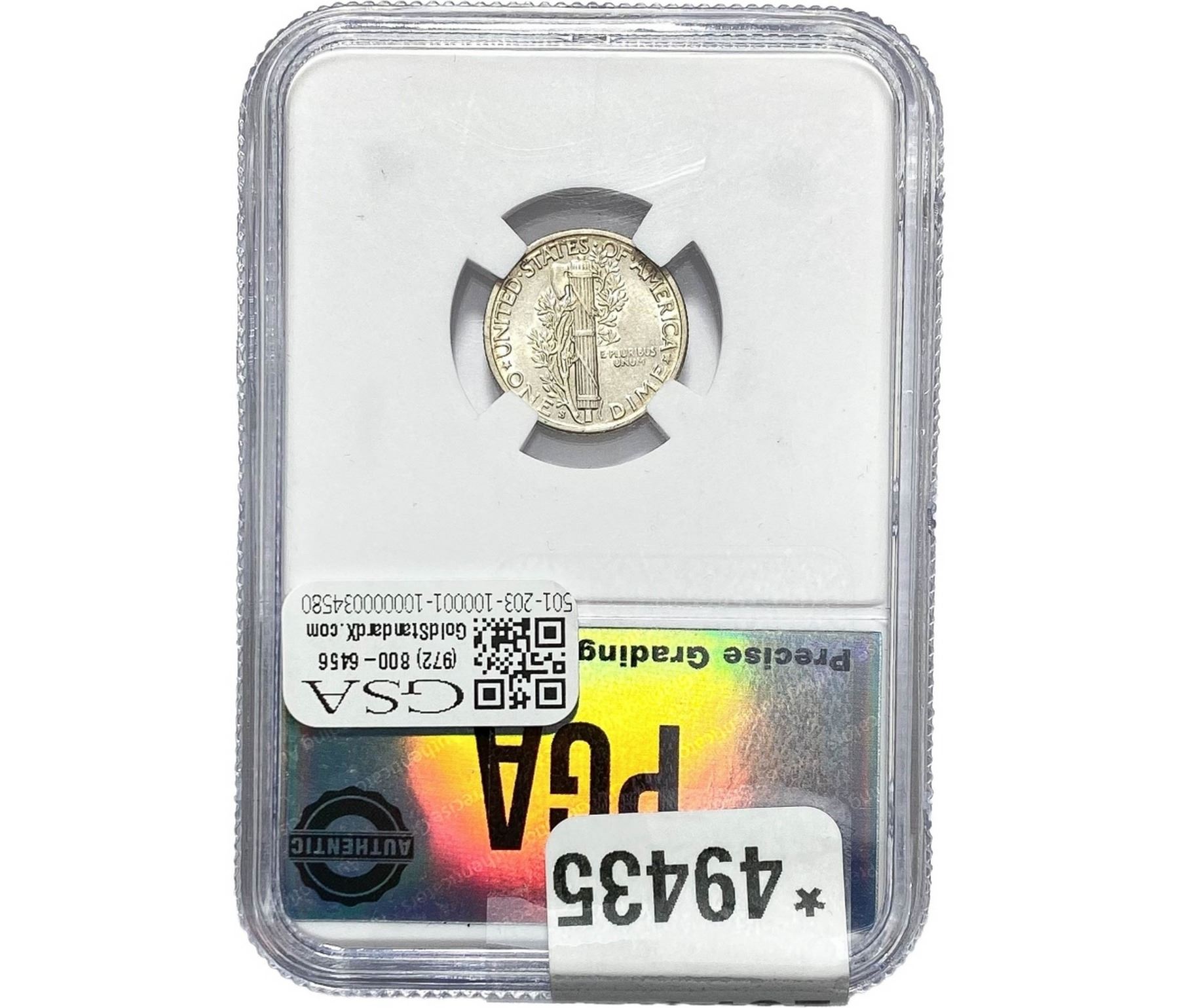 COINS AND CURRENCY LISTED IN GSA’S CATALOG AS GRADED AND ENCAPSULATED BY PCGS, NGC, ANACS, ICG, PCGS CURRENCY, PMG, PCGS BANKNOTE GRADING, CMC OR ANY OTHER THIRD-PARTY GRADING SERVICE ARE LIKEWISE SOLD “AS-IS” EXCEPT AS EXPRESSLY SET FORTH HEREIN. ALL THIRD-PARTY GRADING SERVICE GUARANTEES, INCLUDING AUTHENTICITY, ARE THE SOLE RESPONSIBILITY OF THE THIRD-PARTY GRADING SERVICE AND NOT WARRANTIES OR GUARANTEES OF GSA. BIDDERS SHOULD CONTACT THESE THIRD-PARTY GRADING SERVICES DIRECTLY WITH RESPECT TO ANY CLAIMS OR QUESTIONS THEY MAY HAVE CONCERNING THEIR GUARANTEES AND WARRANTIES. BIDDERS ACKNOWLEDGE AND AGREE THAT AUCTIONEER IS NOT BOUND BY OR LIABLE FOR ANY OPINION OR CERTIFICATION BY ANY THIRD-PARTY GRADING SERVICE. REMOVAL OF A PRODUCT FROM ITS PROTECTIVE CASING OR HOLDER OR ALTERATION OF ANY COIN HOLDER WAIVES ALL RIGHTS CONCERNING THE PRODUCT CONTAINED THEREIN.