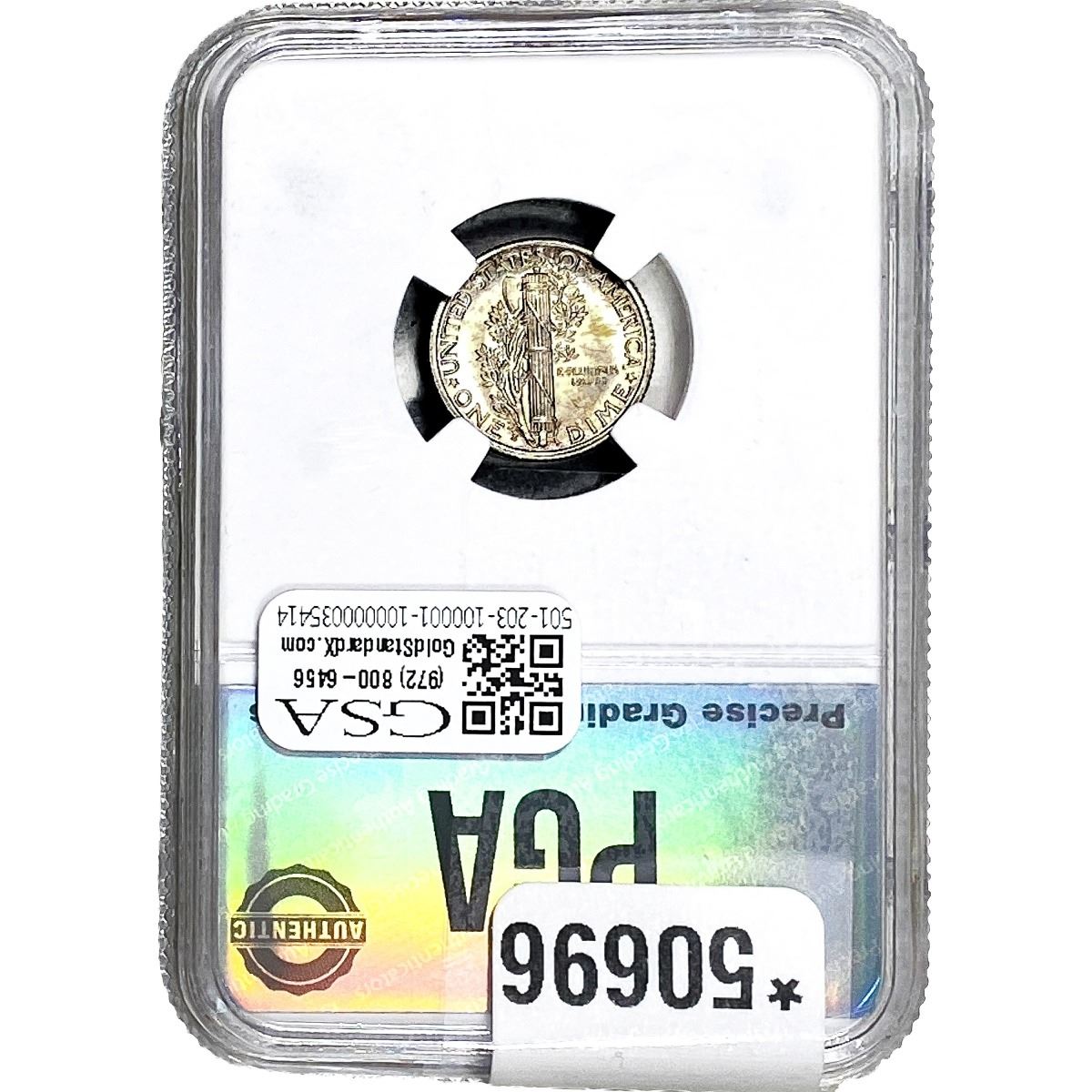 COINS AND CURRENCY LISTED IN GSA’S CATALOG AS GRADED AND ENCAPSULATED BY PCGS, NGC, ANACS, ICG, PCGS CURRENCY, PMG, PCGS BANKNOTE GRADING, CMC OR ANY OTHER THIRD-PARTY GRADING SERVICE ARE LIKEWISE SOLD “AS-IS” EXCEPT AS EXPRESSLY SET FORTH HEREIN. ALL THIRD-PARTY GRADING SERVICE GUARANTEES, INCLUDING AUTHENTICITY, ARE THE SOLE RESPONSIBILITY OF THE THIRD-PARTY GRADING SERVICE AND NOT WARRANTIES OR GUARANTEES OF GSA. BIDDERS SHOULD CONTACT THESE THIRD-PARTY GRADING SERVICES DIRECTLY WITH RESPECT TO ANY CLAIMS OR QUESTIONS THEY MAY HAVE CONCERNING THEIR GUARANTEES AND WARRANTIES. BIDDERS ACKNOWLEDGE AND AGREE THAT AUCTIONEER IS NOT BOUND BY OR LIABLE FOR ANY OPINION OR CERTIFICATION BY ANY THIRD-PARTY GRADING SERVICE. REMOVAL OF A PRODUCT FROM ITS PROTECTIVE CASING OR HOLDER OR ALTERATION OF ANY COIN HOLDER WAIVES ALL RIGHTS CONCERNING THE PRODUCT CONTAINED THEREIN.